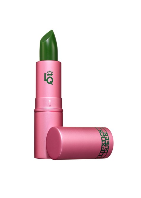 A deep, hunter green lipstick with a super creamy, buildable finish.