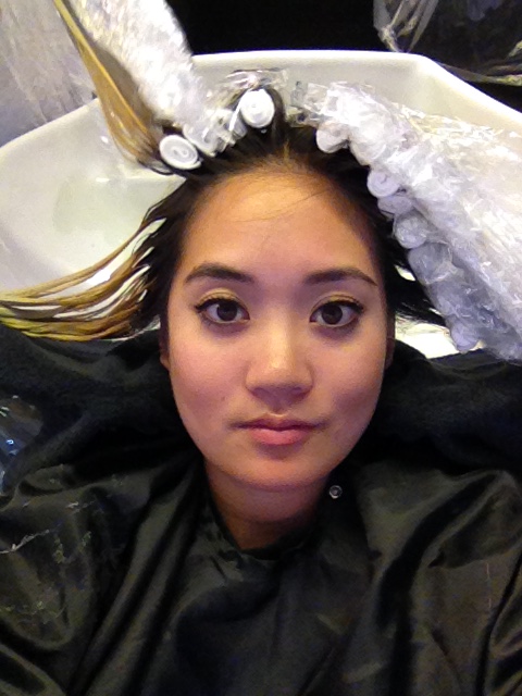 “Ready?” Zoe asked before she placed a piece of cotton on my head, painted on the first coat of bleach, and wrapped a piece of plastic wrap on the bleached strands. The cotton, she explained, was to keep the bleach away from my scalp because the heat from my head would cause the bleach to develop more quickly. After she dyed most of my hair the first time, she would go back and bleach the roots in a second pass. This is called a double-process, which I had always heard people talk about when they were going platinum blonde.