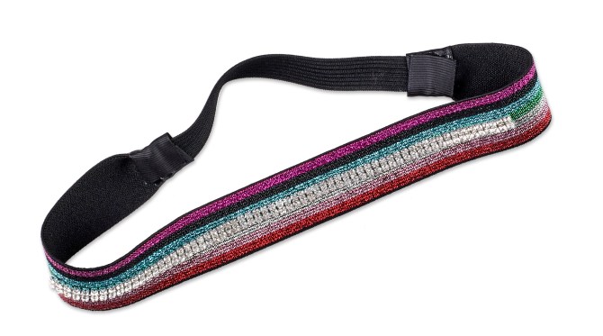 An elastic headband full of glitter and rhinestones is the chicest way to keep your strands out of your face.