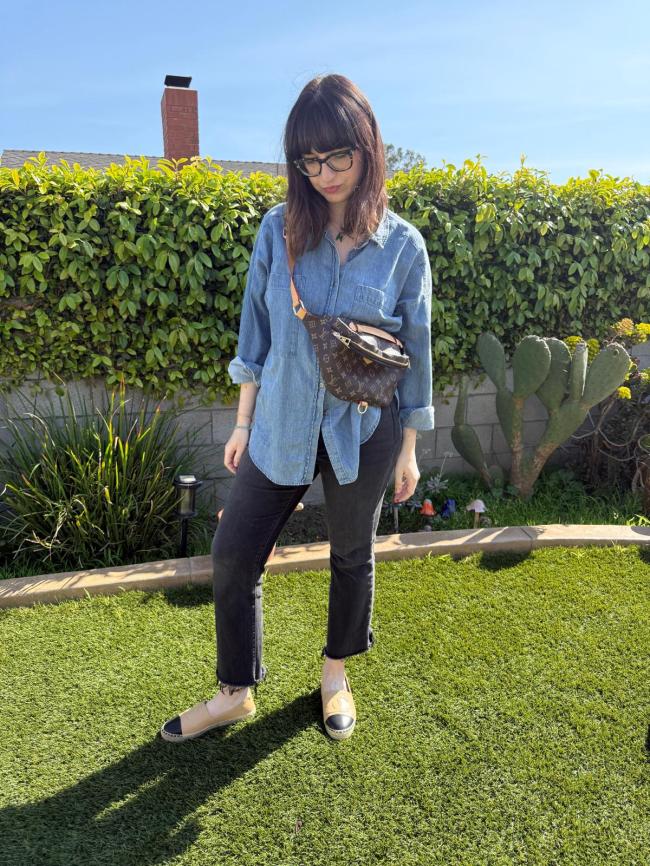 “I spent under $100 for this crossbody and pair of espadrilles [see above]—they feel like I spent under $100 for them. I already know if I wear these shoes past my doorstep, my feet will look like they’ve stepped into blenders.” Vaynshteyn says. “The crossbody is fine, but is a lot more stiff than what I imagine the original is like. So, yeah, if you’re going to seriously explore DHGate, I would recommend going for the higher price point goods. The bags I paid $150+ for feel incredibly luxurious and look legitimate. I’ve had several people compliment me on those bags and took everything in me to not say, ‘Thanks! It cost me as much as my Uber Eats burrito and drinks.'”