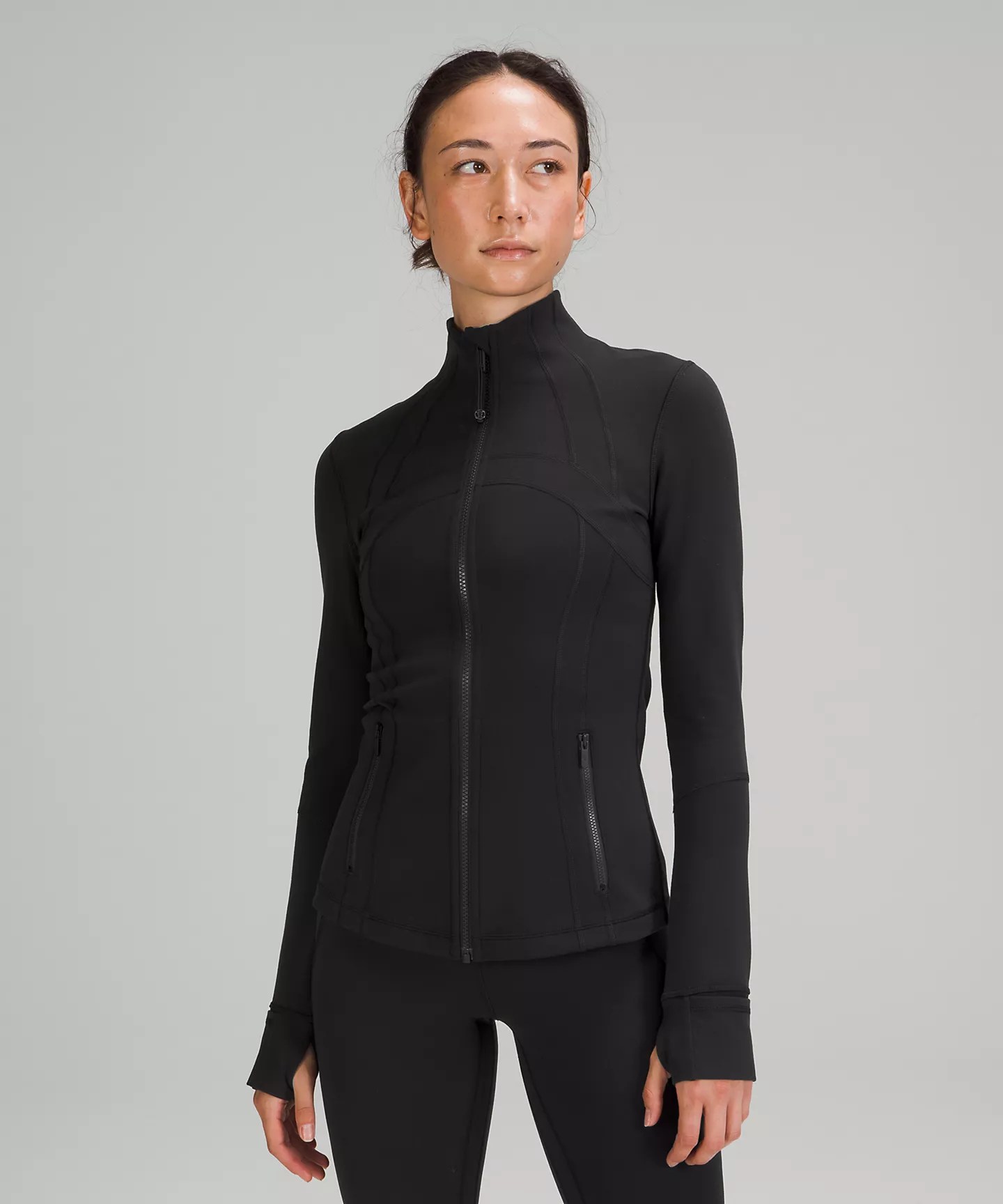 This soft and stretchy jacket is designed to wick away sweat during your hardest workouts without riding up or bunching at the bottom. It stays in place during burpies, runs, jumping jacks, you name it.