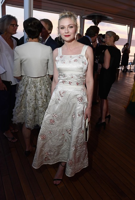 Kirsten Dunst in a Christian Dior dress and Salvatore Ferragamo shoes