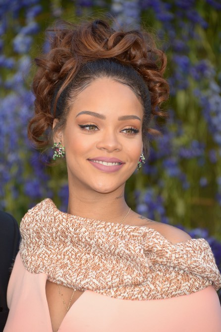 Rihanna’s eyebrows are naturally fairly light and sparse, but you’d never know—they’re drawn on, yes, but in such a way that they always look perfectly natural. To get this look, use a firm, narrow pencil a shade lighter than your hair color; we are passionately in love with Urban Decay’s Brow Beater Pencil ($20, Urban Decay), which gives amazing definition and blends like a dream with the attached spoolie at the other end.
