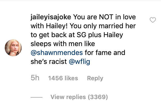 “The fact that you want to spend your day dedicating yourself to hate says a lot about you, and if this was some sick ploy to get my attention you are wrong on so many levels. I’ve seen multiple people say things like this and ill never respond again to a message like this because I don’t like to even give it my energy but this is a reply to all immature sick people who send Hailey hurtful messages like ‘he always goes back to Selena’ or ‘Selena is better for him’ YOU HAVE NO IDEA MY LIFE AND WHAT’S GOOD FOR ME!!”