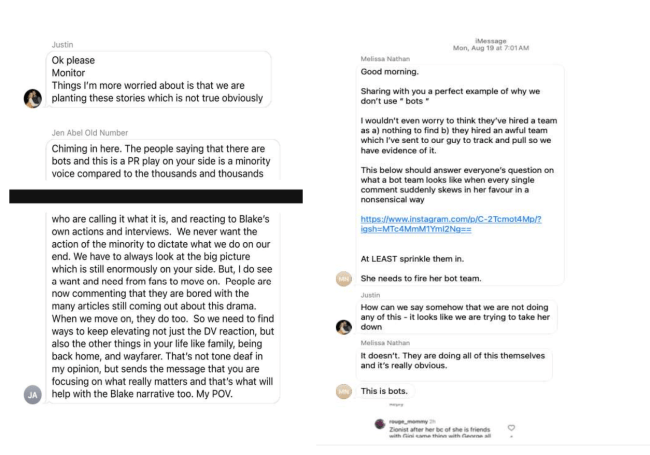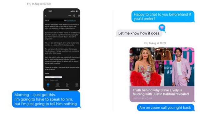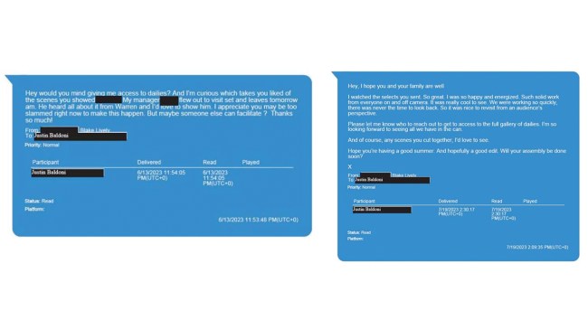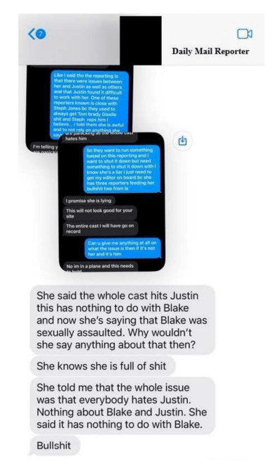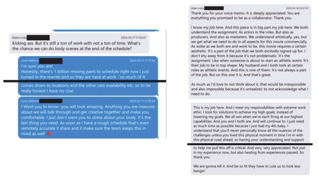What were Justin Baldoni and Blake Lively’s texts?