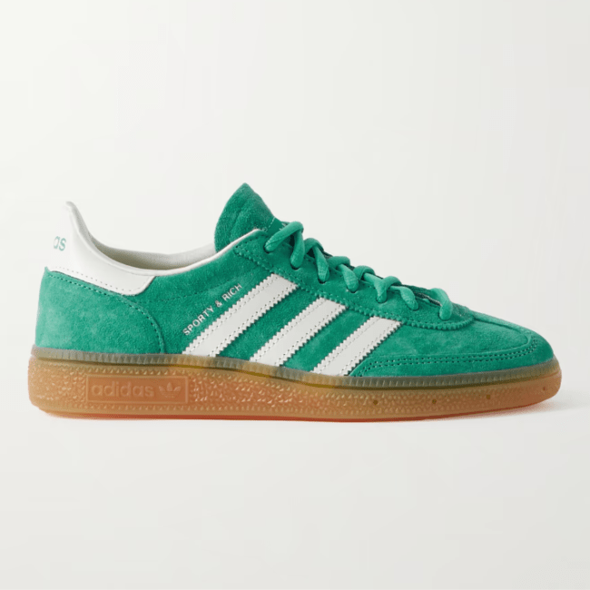 Green is must-wear color. We saw the hue trend for spring, summer, and now fall. Consider styling these Adidas kicks with cashmere sweats, light-wash jeans, or a black satin skirt with a matching knit turtleneck.